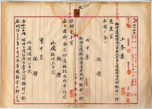 四 脚気ニ罹リ辞職ヲ願出タル臨時台湾総督府工事部技師兼台湾総督府技師野村一郎ノ本官ヲ免シ二級俸ヲ下賜シ事務格別勉励ニ付キ一時金ヲ賞与ス(秘甲第四八四号)