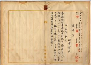 一五 秘書課長ヨリ各医院長ヘ台湾総督府医院官制改正ノ際医官又ハ医官補ニ任セラレタル者ニシテ勤務辞令書ノ公布ヲ受ケサル者ハ従前ノ通ト心得ヘキ旨各本人ヘ伝達方通牒ス
