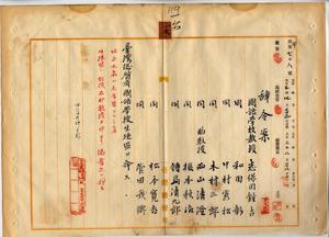 一六 台湾総督府国語学校長隈本繁吉ノ内申ニヨリ台湾総督府国語学校教授ノ志保田鉎吉・和田彰・中村寅松・木村三郎及ヒ台湾総督府国語学校助教授ノ西山清澄・榎本秋治・待鳥清九郎・松本寛吉・菅田茂郷ニ台湾総督府国語学校生徒監ヲ命ス(秘甲第七〇八号)