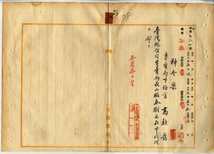 六 専売局長山脇春樹ノ内申ニヨリ台湾総督府専売局事務官高雄晋ニ台湾総督府専売局長山脇春樹不在中ノ代理ヲ命ス(秘甲第七八一号)