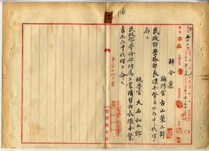 二〇 学務部長隅本繁吉ノ内申ニヨリ台湾総督府編修官古山栄三郎ニ学務部長隅本繁吉不在中ノ代理ヲ命シ、台湾総督府視学官大石和太郎ニ民政部学務部附属工業講習所長隅本繁吉不在中ノ代理ヲ命ス(秘甲第九四一号)