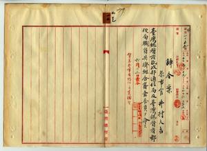 二三 通信局長角源泉ノ内申ニヨリ参事官井村大吉ニ台湾総督府民政部通信局及ヒ台湾総督府郵便局職員共済組合審査委員ヲ命ス(秘甲第一〇五五号)