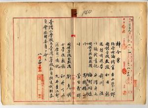 一四 学務部長代理古山栄三郎ノ内申ニヨリ台湾総督府編修官古山栄三郎、台湾総督府国語学校教授和田彰、台湾総督府視学前川治、台湾総督府編修書記平沢平七、台湾総督府国語学校助教授ノ梅村好造・相馬禎三郎・高橋精一・菅田茂郷・劉克明、台湾総督府高等女学校教諭臼井てい、台湾総督府嘱託丸井圭治郎ニ台湾小学校及台湾公学校教員検定試験委員会臨時委員ヲ命ス〔尚、相馬禎三郎は追加のため、内申書は別紙八月一四日付のもの〕