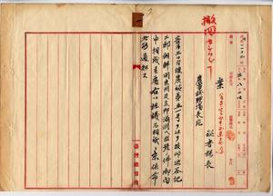 一 農事試験場技師渋谷紀三郎ヲ朝鮮及ヒ関東洲ヘ出張ノ序ヲ以テ支那法庫内地方ニ於ケル亜爾加里土壌調査ノ為メ支那満洲ヘ出張内申ノ件詮議相成ラス撤回セシム(秘甲第一一〇二号)