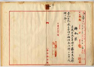 臺灣總督府醫院醫長藤田秀太郎臺北醫院長醫學博士稻垣長次郎不在中代理ノ件