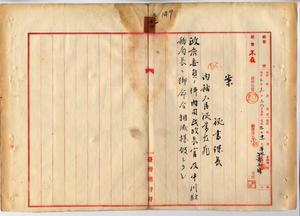 三一 内務省ヨリノ問合セニ付キ民政長官内田嘉吉及ヒ財務局長中川友次郎ヲ政府委員トナストノ回答ノ件