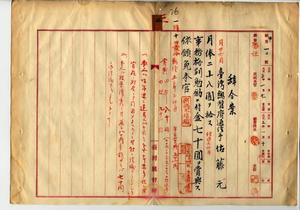 三 疾病ニ罹リ職ニ堪ヘサルヲ以テ辞職ヲ願出シタル台北郵便局勤務台湾総督府通信手佐藤元ヲ昇給シ事務格別勉励ニ付キ一時金ヲ賞与シ本官ヲ免ス(秘甲第一〇号)