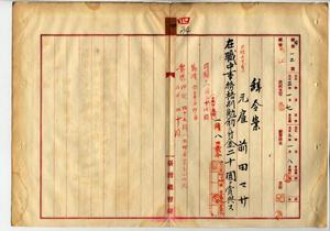 四 通信局長角源泉ノ内申ニヨリ依願解雇シタル元雇前田マサニ在職中事務格別勉励ニ付キ一時金ヲ賞与ス(秘甲第一二号)