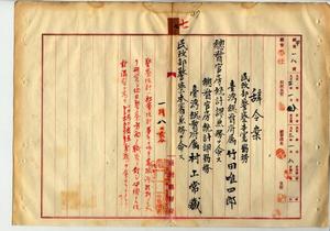 七 総督官房統計課長水科七三郎ト台湾総督府警察本署長代理中山佐之助ノ内申ニヨリ民政部警察本署勤務台湾総督府属武田唯四郎ニ総督官房統計課兼務ヲ命シ、総督官房統計課勤務台湾総督府属村上常蔵ニ民政部警察本署兼務ヲ命ス(秘甲第一八号)
