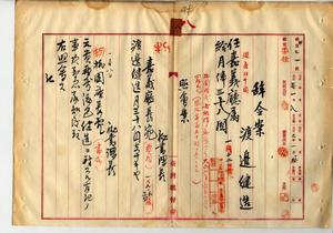 八 嘉義庁長津田毅一ノ内申ニヨリ元桃園庁属渡辺健造ヲ嘉義庁属ニ在ス(秘甲第二一号)