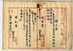 一五 台東庁長ノ内申電報ニヨリ台北庁属兼台湾総督府属中村弥門ヲ台東庁属ニ任シ六級俸ヲ給ス(秘甲第三二号)