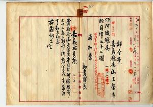 嘉義廳屬山上榮吉轉任ノ件、任阿緱廳屬