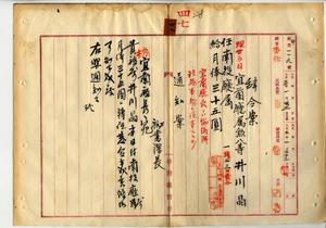 四七 南投庁長石井亨ノ内申ニヨリ宜蘭庁属井川晶ヲ南投庁属ニ任ス(秘甲第一一九号)
