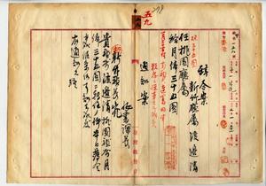 五九 桃園庁長武藤針五郎ト新竹庁長家永泰吉郎ノ内申ニヨリ新竹庁属渡辺清ヲ桃園庁属ニ任ス(秘甲第一五八号)