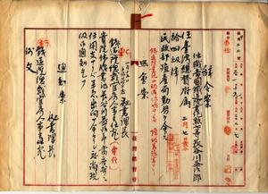 一 殖産局長高田元治郎ノ内申ニヨリ休職鉄道院書記長谷川益次郎ヲ台湾総督府属ニ任シ四級俸ヲ給シ民政部殖産局勤務ヲ命ス(秘甲第二二号)