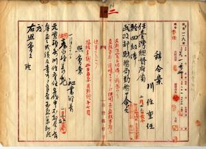 二 財政局長中川友次郎ノ内申ニヨリ元台北庁属川住重任ヲ台湾総督府属ニ任シ四級俸ヲ給シ民政部財務局勤務ヲ命ス(秘甲第一一六号)