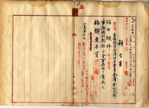 三 麻刺里亜病ニ罹リ職ニ堪ヘサルヲ以テ辞職ヲ願出タル台湾総督府通信属金沢槌太郎ニ七級俸ヲ給シ事務格別勉励ニ付キ一時金ヲ賞与シ本官ヲ免ス(秘甲第一二五号)