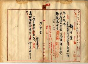 四 悪性マラリアニ罹リ職ニ堪ヘサルヲ以テ辞職ヲ願出タル通信属森田一得ニ五級俸ヲ給シ事務格別勉励ニ付キ一時金ヲ賞与シ本官ヲ免ス(秘甲第一二六号)