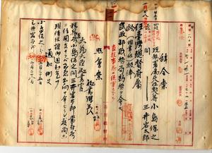 一一 財務局長中川友次郎ノ内申ニヨリ元神奈川税務署長心得税務署属小島保之ト松戸税務署在勤直税課長税務署属三井岩太郎ヲ台湾総督府属ニ任シ小島ヲ四級俸(二月二五日付)ニ三井ヲ五級俸(二月二八日付)ヲ給シ民政部財務局勤務ヲ命ス(秘甲第一八〇号)