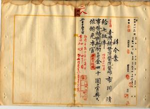 二八 疾病ニ罹リ職ニ堪ヘサルヲ以テ辞職ヲ願出タル台北医院勤務台湾総督府医院医師市川清ニ七級俸ヲ給シ事務格別勉励ニ付キ一時金ヲ賞与シ本官ヲ免ス(秘甲第二一三号)