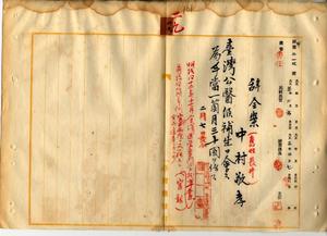二九 民政部警察本署長代理中山佐之助ノ内申ニヨリ金沢医学専門学校ヲ卒業シ広東ニテ開業シタル期間台湾総督府衛生嘱託医トナリタル中村敬孝(旧姓長井)ニ台湾公医候補生ヲ命シ手当一箇月三〇円ヲ給ス(秘甲第二一四号)