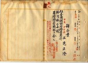 雇三宅正澄臺灣總督府燈臺看守ニ轉任ノ件、通信局勤務