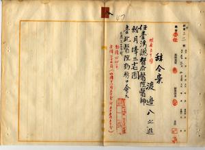 八 台北医院長稲垣長次郎ノ内申ニヨリ台北医院雇渡辺八之進ヲ台湾総督府医院医師ニ任シ月俸三七円ヲ給シ台北医院勤務ヲ命ス(秘甲第三一一号)