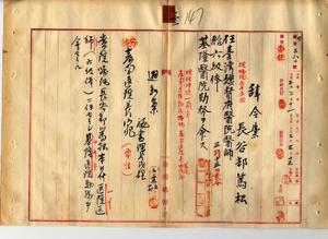 三二 基隆医院長築山揆一ノ内申ニヨリ台南医院医務嘱託長谷部篤松ヲ台湾総督府医院医師ニ任シ六級俸ヲ給シ基隆医院勤務ヲ命ス(秘甲第三八〇号)