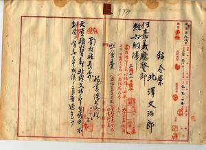 三八 嘉義庁長津田毅ノ内申ニヨリ元南投庁警部北沢文治郎ヲ嘉義庁警部ニ任ス(秘甲第三九四号)