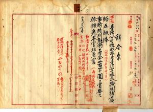 七五 慢性マラリヤニ罹リ職ニ堪ヘサルヲ以テ辞職ヲ願出タル台湾公学校教諭兼台湾公学校長残間権兵衛ニ五級俸ヲ給シ事務格別勉励ニ付キ一時金ヲ賞与シ本官兼兼官ノ免ス(秘甲第四八八号)〔七〇長山友八・七三金子政吉・七四森川周平・七六吉川栄三ノ昇級案あり〕