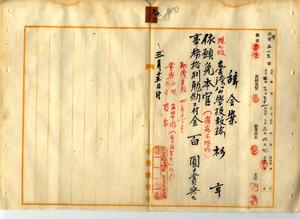 九〇 疾病ニ罹リ職ニ堪ヘサルヲ以テ辞職ヲ願出タル咸莱硼公学校勤務台湾公学校教諭杉亨ヲ本官ヲ免シ事務格別勉励ニ付キ一時金ヲ賞与ス(秘甲第五一三号)