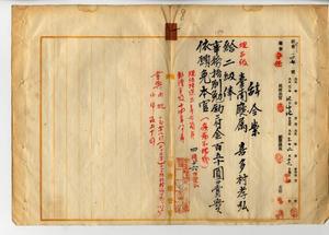 一 疾病ニ罹リ職ニ堪ヘサルヲ以テ辞職ヲ願出タル台南庁属喜多村孝弘ニ二級俸ヲ給シ事務格別勉励ニ付キ一時金ヲ賞与シ本官ヲ免ス(秘甲第一四七号)