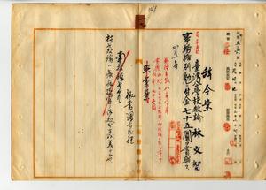 一七 南投庁長石橋亨ノ内申ニヨリ台湾公学校教諭林文智ニ事務格別勉励ニ付キ一時金ヲ賞与ス(秘甲第五二六号)