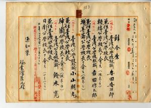 二一 台中庁長枝徳二ノ内申ニヨリ台湾公学校教諭安田安次郎ニ台湾公学校長兼任ヲ命シ梧棲台湾公学校長ヲ命ス、台湾公学校教諭吉田作太郎ニ台湾公学校長兼任ヲ命シ埔姜崙台湾公学校長ヲ命ス、台湾公学校教諭小山朝丸ニ台湾公学校長ヲ命シ神崗台湾公学校長ヲ命ス、台湾公学校教諭鈴木寛ニ台湾公学校長兼任シ命シ四月一日付ヲ以テ日南台湾公学校長ヲ命ス(秘甲第五三六号)