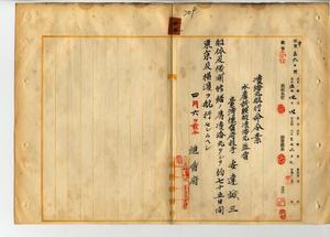 三三 殖産局長高田元治郎ノ内申ニヨリ水産試験船凌海丸監督台湾総督府技手安達誠三ヲ水産試験用漁船凌海丸ノ船体及機関修繕ノ為メ約七五日間東京及ヒ横浜ヲ航行セシム(秘甲第五六〇号)