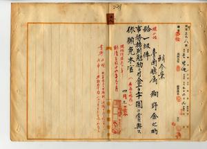 三八 疾病ニ罹リ職ニ堪ヘサルヲ以テ辞職ヲ願出タル台南庁属細野金之助ニ一級俸ヲ給シ事務格別勉励ニ付キ一時金ヲ賞与シ本官ヲ免ス(秘甲第五六八号)