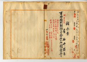 四八 殖産局長高田元治郎ノ具申ニヨリ病気辞職ヲ申出タル雇石井岩吉ヲ事務格別勉励ニ付キ一時金ヲ賞与ス(秘甲第五八五号)