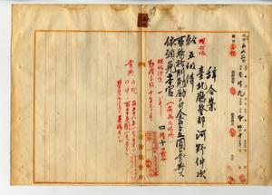 五二 脚気ニ罹リ職ニ堪ヘサルヲ以テ辞職ヲ願出タル台北庁警部河野仲次ニ五級俸ヲ給シ事務格別勉励ニ付キ一時金ヲ賞与シ本官ヲ免ス(秘甲第五九五号)