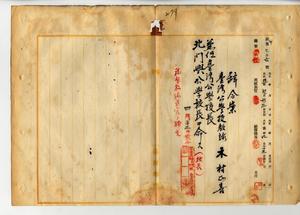 一〇一 台南庁長松木茂俊ノ内申ニヨリ台湾公学校教諭木村正善ヲ台湾公学校長兼任ヲ命シ北門嶼公学校長ヲ命ス(秘甲第七〇六号)