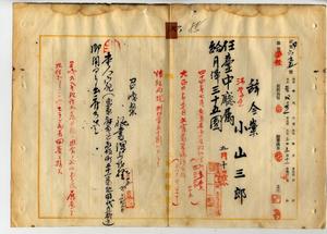 六 台中庁長枝徳二ノ内申ニヨリ東京帝国大学卒業文官高等試験合格者ノ小山三郎ヲ台中庁属ニ任シ月俸三五円ヲ給スルノ件(秘甲第六九五号)