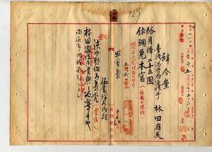 二二 台湾総督府通信手林田省美ハ脚気ニ罹リ職務ニ堪ヘ難キ旨ヲ以テ辞職願ニヨリ月俸二五円ヲ給シ本官ヲ免スルノ件(秘甲第七八四号)
