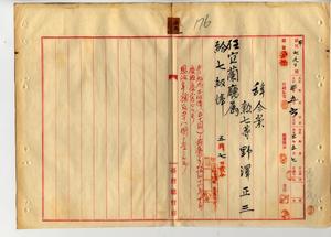 二五 宜蘭庁長小松吉久ノ内申ニヨリ勲七等ノ野沢正三ヲ宜蘭庁属ニ任シ七級俸ヲ給スルノ件(秘甲第七九〇号)