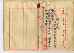 二九 宜蘭庁属木村常次郎ハ麻刺里亜ニ罹リ職務ニ堪ヘ難キ旨ヲ以テ辞職願ニヨリ四級俸ヲ給シ本官ヲ免シ事務格別勉励ニ付キ一時金ヲ賞与スルノ件(秘甲第七九七号)