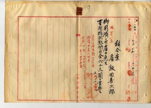 六二 台湾総督府殖産局長高田元治郞ノ具申ニヨリ雇飯田喜次郎ハ御用済ニ付キ雇ヲ免シ事務格別勉励ニ付キ一時金ヲ賞与スルノ件(秘甲第八六二号)