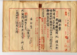 八一 澎湖庁通訳北伝次郎ハ疾病ノ為メ職務ニ堪ヘ難キ旨ヲ以テ辞職願ニヨリ退官シ、月俸三五円ニ昇級ノ上事務格別勉励ニ付キ一時金ヲ賞与スルノ件(秘甲第九一七号)
