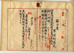 八 新竹庁長家永泰吉郎ノ内申ニヨリ元白沙島公学校教諭東恩納盛亮ヲ台湾公学校教諭兼台湾公学校長ニ任シ銅鑼湾公学校勤務ヲ命シ銅鑼湾公学校長ヲ命ス(秘甲第九二二号)(八八~九九誤綴)