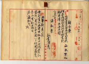 工事部書記山本末松(作業所書記ニ轉任ノ件)