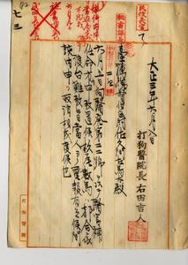七三 打狗医院長右田吉人ノ内申ニヨリ杉尾数馬ヲ台湾総督府医院医官補ニ任シ打狗医院勤務ヲ命スル件本人渡台致シ難キニ付キ内申取消ノ件(廃案)
