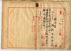 三 土木局長心得高橋辰次郎ノ内申ニヨリ経費整理ノ都合ニヨリ辞職ヲ願出サシタル嘱託下条禎一郎ヲ事務格別勉励ニ付一時金ヲ賞与シ嘱託ヲ解ク(秘甲第一〇八四号)