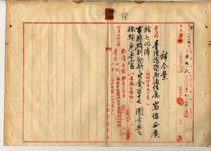 一〇 麻刺利亜ニ罹リ職ニ堪ヘサルヲ以テ辞職願出タル台湾総督府通信属岩佐正広ニ七級俸ヲ給シ事務格別勉励ニ付キ一時金ヲ賞与シ本官ヲ免ス(秘甲第一一一六号)